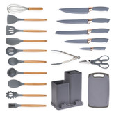 شامل : کفگیر برنج , کفگیر پختوپز , ملاقه , همزن , انبر , پایه (استند) , ابزار آشپزی , چاقو , نگهدارنده چاقو , سرویس کفگیر و ملاقه , تخته گوشت , کفگیر سرو لازانیا , انبر سالاد