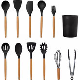 سرویس کفگیر و ملاقه 12 پارچه کیچن ست مدل سیلیکونی دسته بامبو