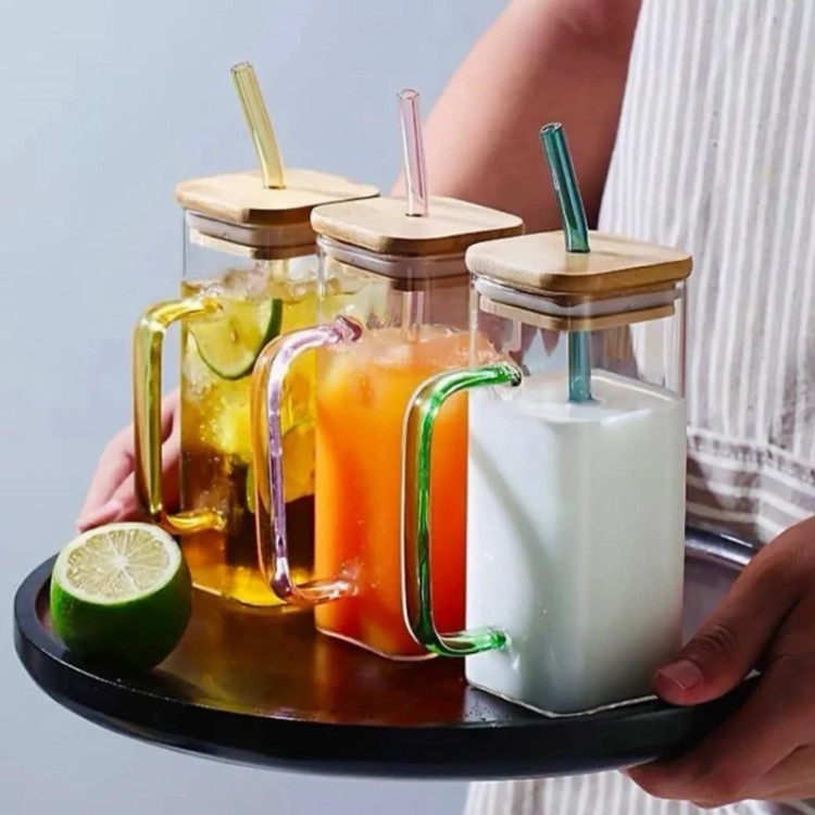 لیوان مدل اسموتیSHZ ساخت چین شفاف و مقاوم نسبت به گرما و سرما است .دارای نی و درب بامبو و دسته رنگی بطول و عرض 14 و 10 و دهانه 6 سانتی متر است.طراحی ساده آن جذاب و باعث میشود مایعات درون آن به وضوح دیده شود.منظور از رنگ در منوی خرید رنگ دسته لیوان میباشد و گرنخ خود لیوان ساده و بدون نوشته است.