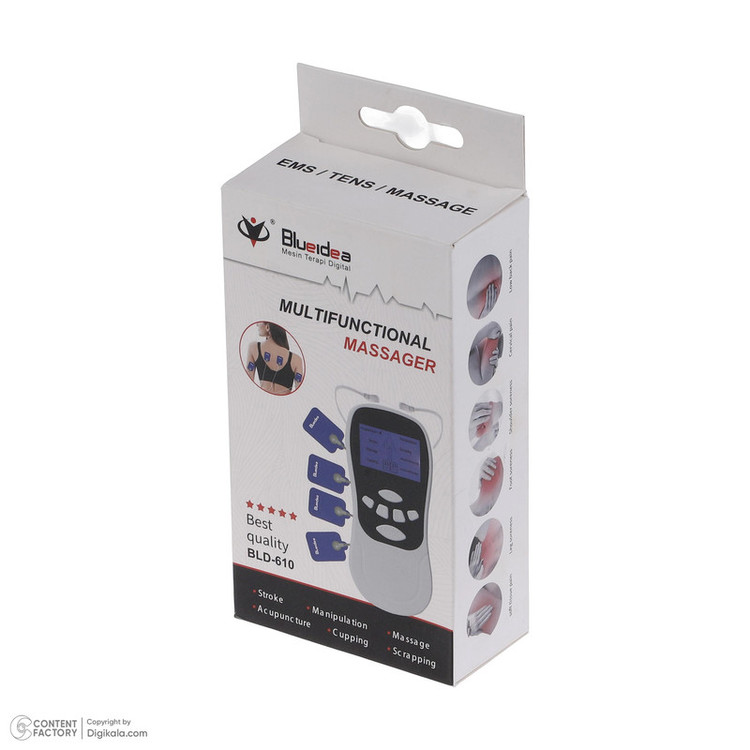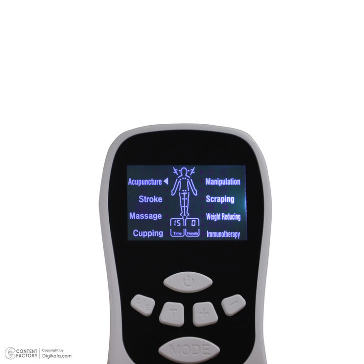 به همراه کابل USB Type C - دو پد برای قرار دادن روی پوست - دو سنسور برای اتصال به دستگاه و پد - صفحه نمایش - دکمههای کنترل - قابل استفاده برای تمام بدن
