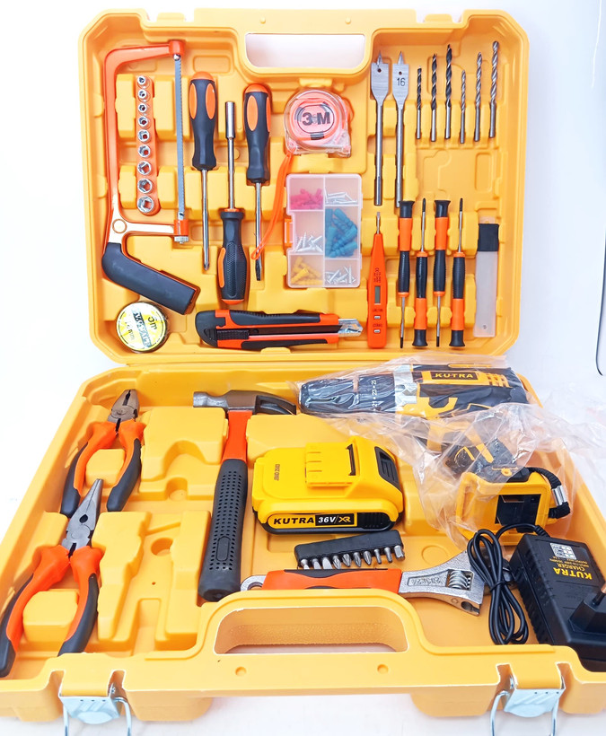 🔧 ست کامل ابزار خانگی و صنعتی به همراه دریل شارژی ۳۶ ولت KUTRA