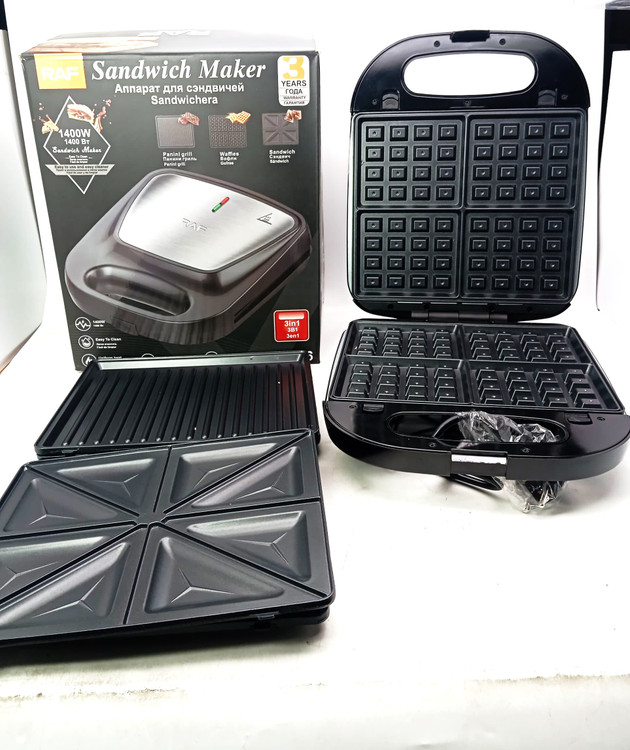با ساندویچساز ۳ کاره راف مدل 236، هر روز صبحانه یا میانوعدهای متفاوت و خوشمزه آماده کن! این دستگاه همهکاره با طراحی هوشمندانه، دارای سه نوع صفحه قابل تعویض برای تهیه ساندویچ، گریل و وافل است. عملکرد سریع، گرمایش یکنواخت و کاربری ساده آن باعث میشود در زمان کوتاهی خوراکیهای متنوع و دلچسب آماده داشته باشید.
