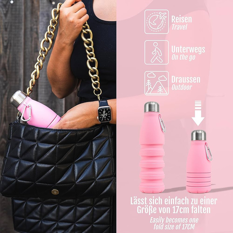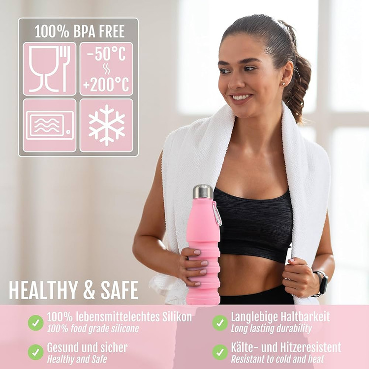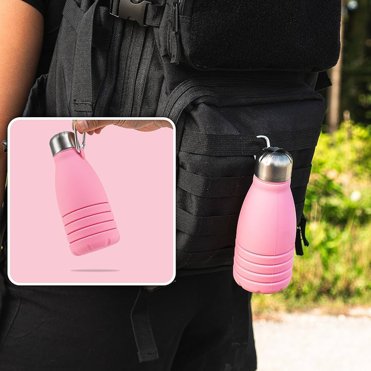 این قمقمه تاشو از جنس سیلیکون باکیفیت ساخته شده و برای افرادی طراحی شده که همیشه در حرکتاند؛ چه در کوهنوردی، سفر، باشگاه یا محل کار. طراحی تاشوی آن باعث میشود پس از استفاده بهراحتی جمع شود و فضای بسیار کمی اشغال کند. بدنهی سیلیکونی مقاوم در برابر حرارت و فشار است و درب ضدنشتی آن خیال شما را از بابت نریختن آب یا نوشیدنی راحت میکند.