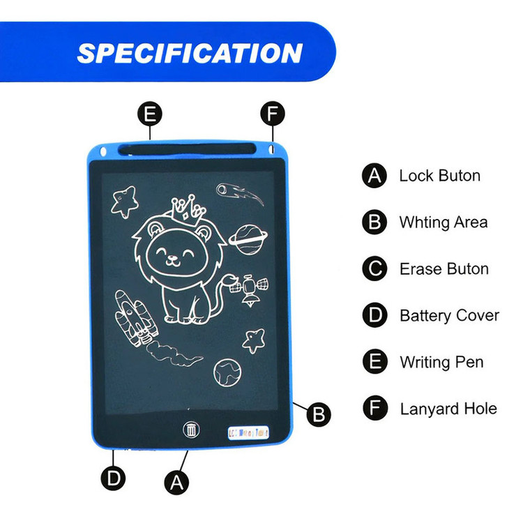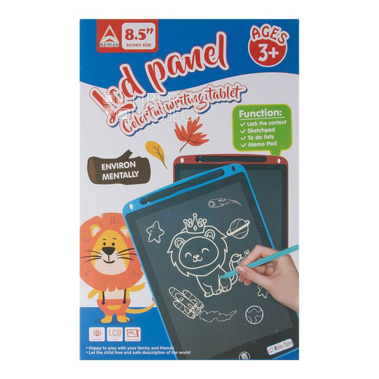 یک تبلت طراحی دوستدار محیط زیست که برای یادداشت ها و طرح های سریع طراحی شده است. کودک می تواند بدون هدر دادن کاغذ و جوهر نقاشی بکشد، نوشتن و شمارش را بیاموزد. ساخته شده از پلاستیک مقاوم و غیر سمی و مجهز به صفحه نمایش LCD 8.5 اینچی روشن، دارای صفحه نمایش LCD ضد خش است. به همراه یک قلم مخصوص برای نقاشی ارائه می شود. قبل از استفاده، قفل تبلت باید باز شود، دکمه در پشت تبلت قرار دارد. شما می توانید ورودی ها و نقاشی ها را به سادگی با فشار دادن یک دکمه روی صفحه حذف کنید. باتری ها گنجانده شده است.