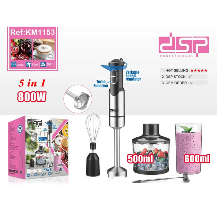 اگر به دنبال یک دستگاه همهکاره و قدرتمند برای آشپزخانه هستید، گوشتکوب برقی ۵ کاره DSP مدل 1153 انتخابی هوشمندانه و حرفهای است. این دستگاه با توان بالای 800 وات، علاوهبر کوبیدن گوشت و مواد غذایی، قابلیت خرد کردن، همزدن، میکس کردن و آسیاب کردن را نیز دارد.