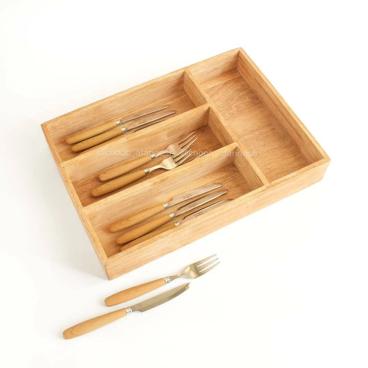 دیگه وقتشه قاشق و چنگالهات همیشه مرتب و دمدست باشن! جاقاشقی چوبی ۴ خانه با طراحی مینیمال و بدنه تمام بامبو، یه گزینه شیک و کاربردی برای هر آشپزخونهایه. هم زیباست، هم بهداشتی، هم فوقالعاده مقاوم!
