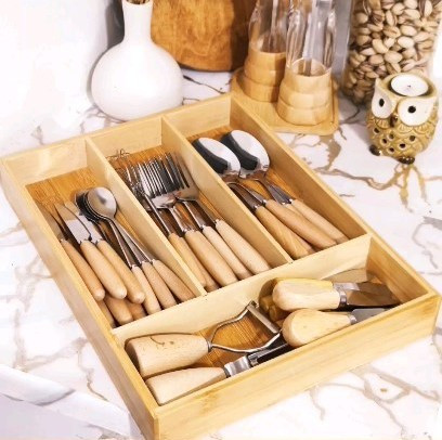 ✅ ۴ قسمت مجزا برای نظمدهی به قاشق 🍽️ چنگال 🍴 چاقو 🔪 و کفگیر🥄
