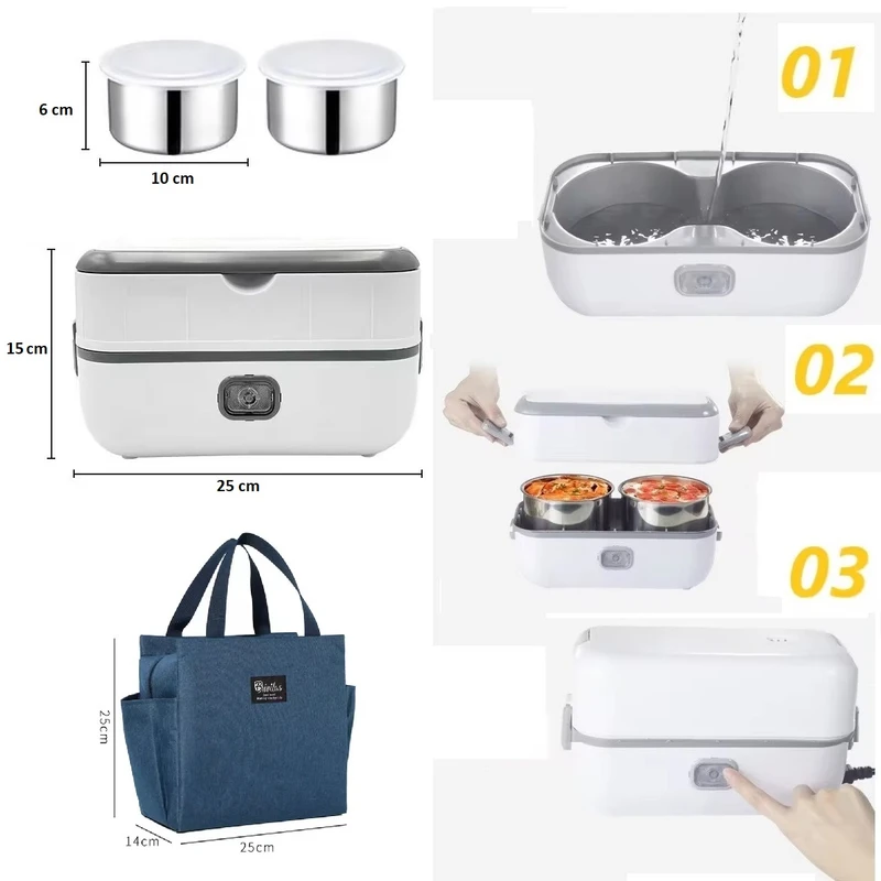 ظرف غذای برقی تک طبقه دو کاسهای یک همراه بینقص برای محل کار، سفر یا دانشگاه است. با طراحی جمعوجور و سبک، و قابلیت گرم کردن یا پخت غذا در مدت زمان کوتاه، این ظرف برقی گزینهای ایدهآل برای کسانی است که به غذای خانگی گرم و تازه اهمیت میدهند.