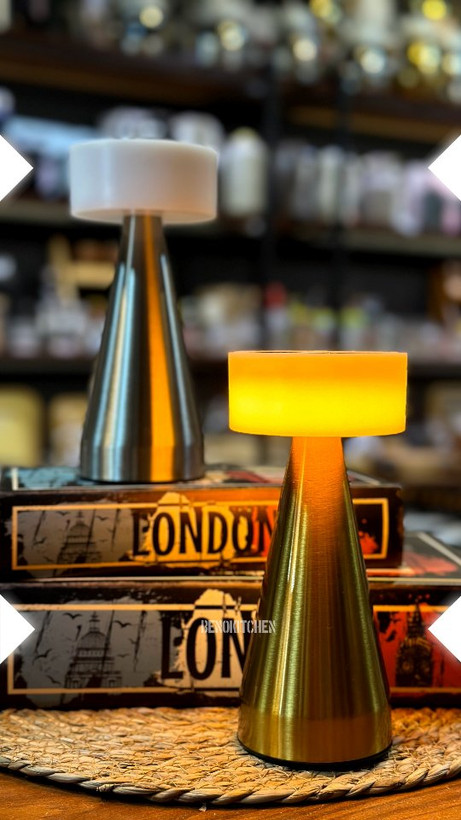 این چراغ رومیزی LED با طراحی مخروطی و بدنه طلاییشیک، انتخابی عالی برای اتاق خواب، میز کار یا کافههای دنج هست. نورش سه حالت داره (زرد، سفید، ترکیبی) که بهراحتی میتونی بنا به نیازت تغییر بدی.