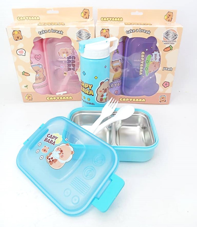 🍱 ست ظرف غذای کودک + قمقمه Capybara