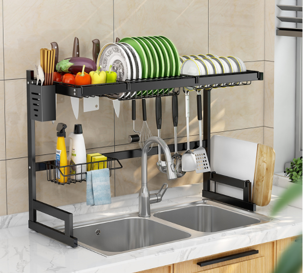 آبچکان سینک چندمنظوره 85 سانتیمتری یک وسیلهی کاربردی و شیک برای نظمدهی به آشپزخانه است. این جا ظرفی مدرن با طراحی ایستاده بالای سینک، فضای اضافی آشپزخانه را آزاد کرده و امکان خشک شدن سریع ظروف، لیوانها، سبزیجات و حتی جای مخصوص برای قاشق و چاقو را فراهم میکند.