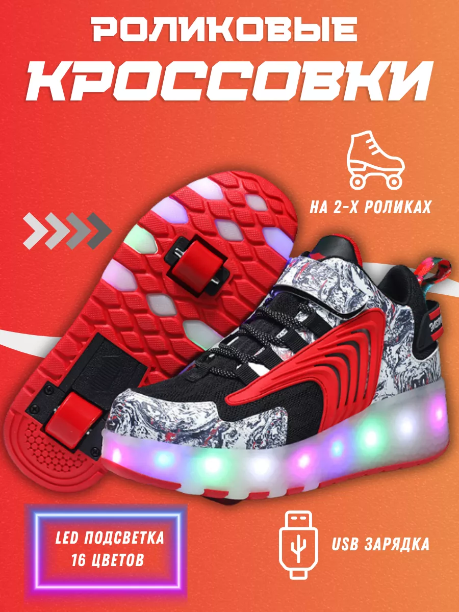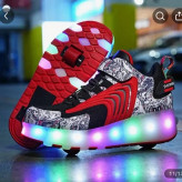 کفش اسکیت دوکاره چراغدار | شارژی با چرخ تاشو 🛹✨