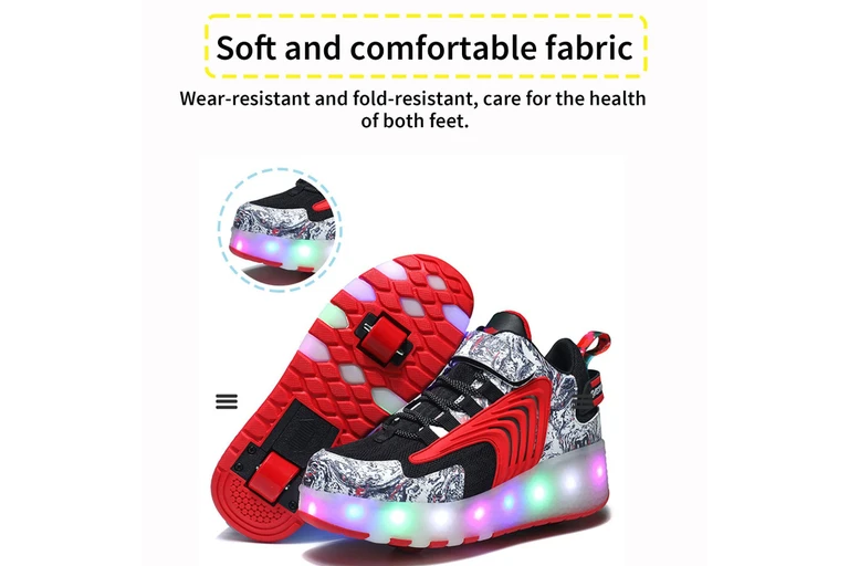 کفش اسکیت چراغدار یک انتخاب فوقالعاده هیجانانگیز برای کودکان و نوجوانانی است که عاشق تحرک، ورزش و جذابیتهای مدرن هستند. این کفش با طراحی اسپرت و رنگبندی جذاب، چراغهای LED رنگی و چرخهای مخفی تاشو تجربهای متفاوت از راه رفتن و اسکیتسواری را به ارمغان میآورد.