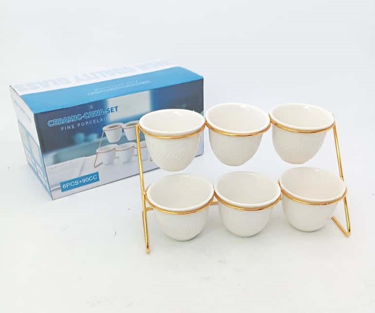 اگر به دنبال یک ست شیک و خاص برای پذیرایی هستید، این سرویس فنجان سرامیکی گزینهای عالی است. طراحی مینیمال و پایه فلزی طلایی، جلوهای لوکس و مدرن به میز پذیرایی شما میدهد.