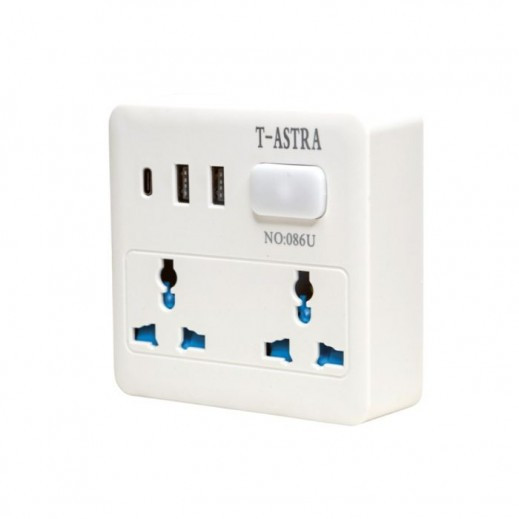 ⚡ چندراهی برق کامپکت با ۳ پورت USB فست شارژ (مدل ASHB0211)