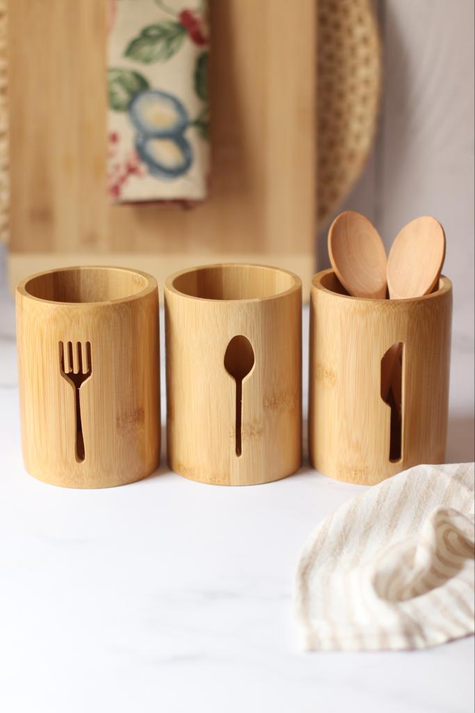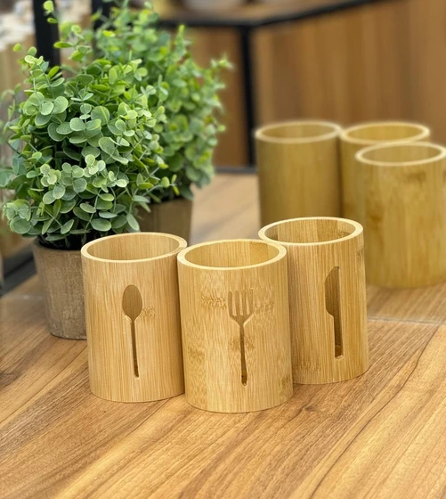 جنس بامبو علاوه بر زیبایی، سبک، مقاوم و دوستدار محیطزیست است و برای نگهداری قاشق، چنگال و چاقو کاملاً بهداشتی و مناسب استفاده روزمره میباشد.