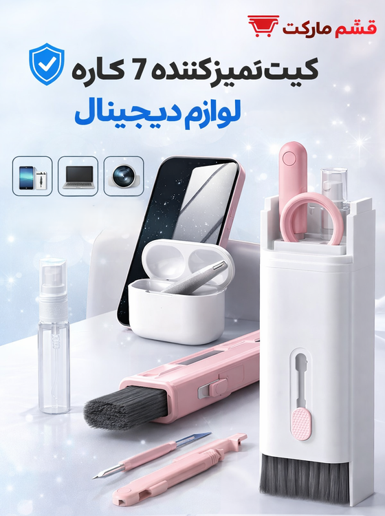 اگه از گرد و خاک روی کیبورد، چربی روی صفحه موبایل یا جرم داخل ایرپادت کلافه شدی، این کیت ۷ کاره دقیقاً همون چیزیه که لازم داری 😎✨